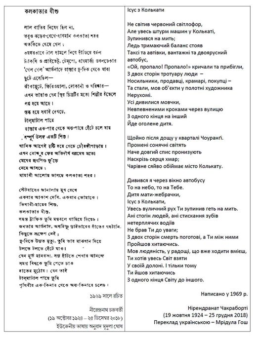 - Ніредранат Чакраборті. Ісус з Колькати / Український переклад з бенґалі Мрідули Гош. JPG